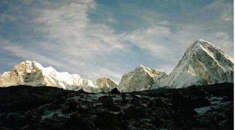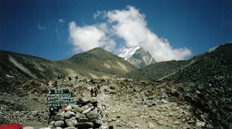 morrena lateral para cruzar un glaciar adyacente, alcanzando Gorak Shep,una
