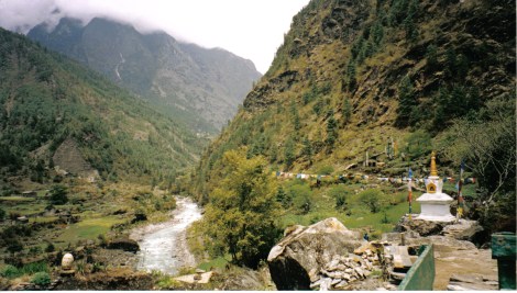 El camino desciende hasta Punki,junto al Imja Khola, que es un río, para