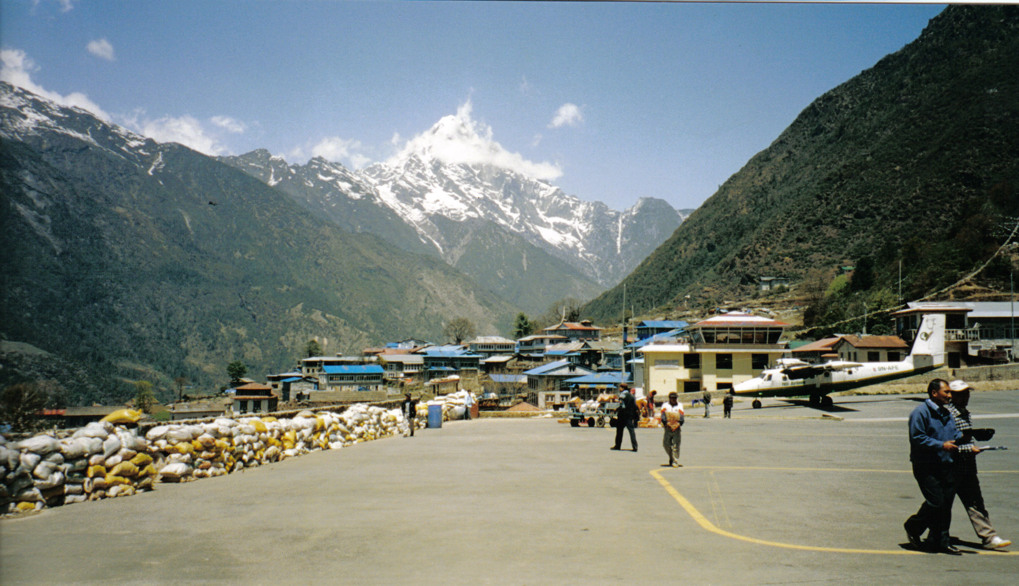 trasladar a Lukla (2800m). Allí me sorprendió un cartel que decía:’Si vuelas en