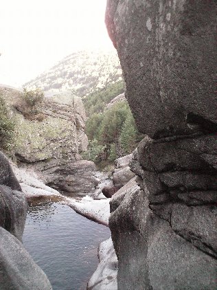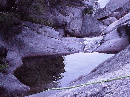 Después de tardar 1h 15m en llegar a la cabecera, tras un bonito paseo pedrizero con un buen desnivel, llegamos nos pusimos los neoprenos y comenzamos el descenso. La entrada es un resalte de unos tres metros saltable, después una sucesión de hasta 9 rápeles, casi todos en su recepción con pozas que cubre totalmente.
