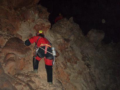 Trepada para el acceso a visitar los espeleotemas