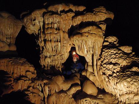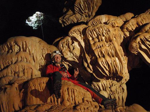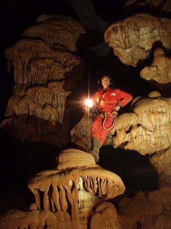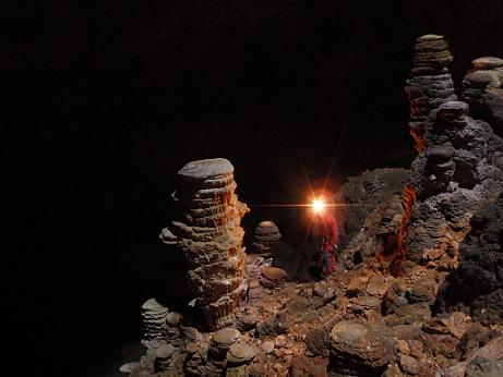 En la sala junto con los famosos espeleotemas en «pila de platos» encontramos grandes formaciones para entretenernos horas…