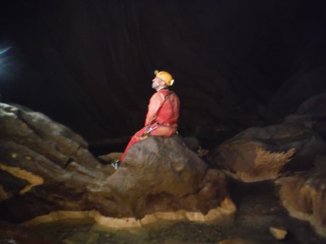En este punto tomamos río arriba (para abajo gran pozo y Rubicera), pasamos por la sala de la cascada, anfiteatro, etc. Un poco antes de las cuerdas en fijo de las rampas que dan al agujero soplador, Marta nos enseñó como subir la trepada del pedal haciendo el moonwalker!! Qué momentazo!!!..pena no haberlo grabado.