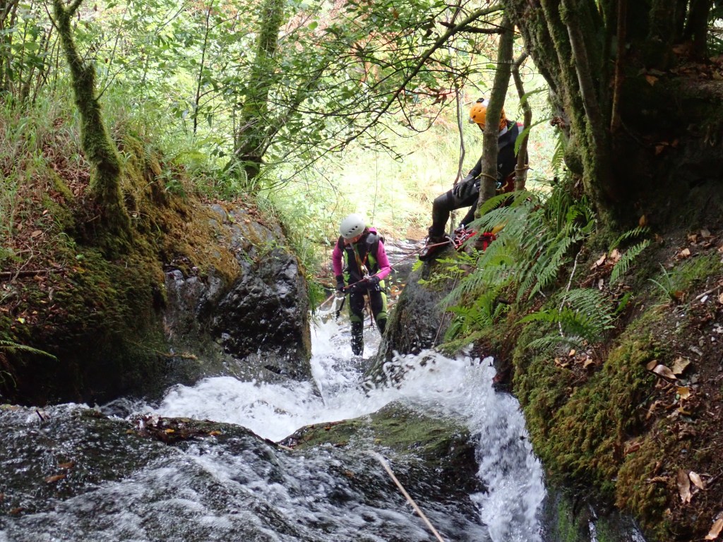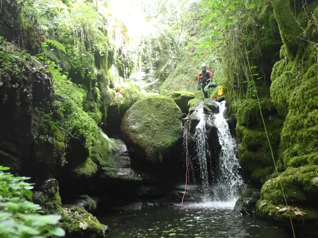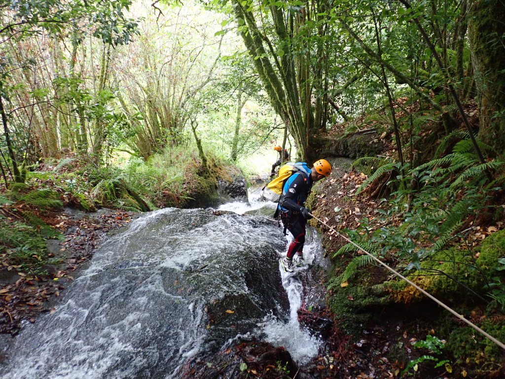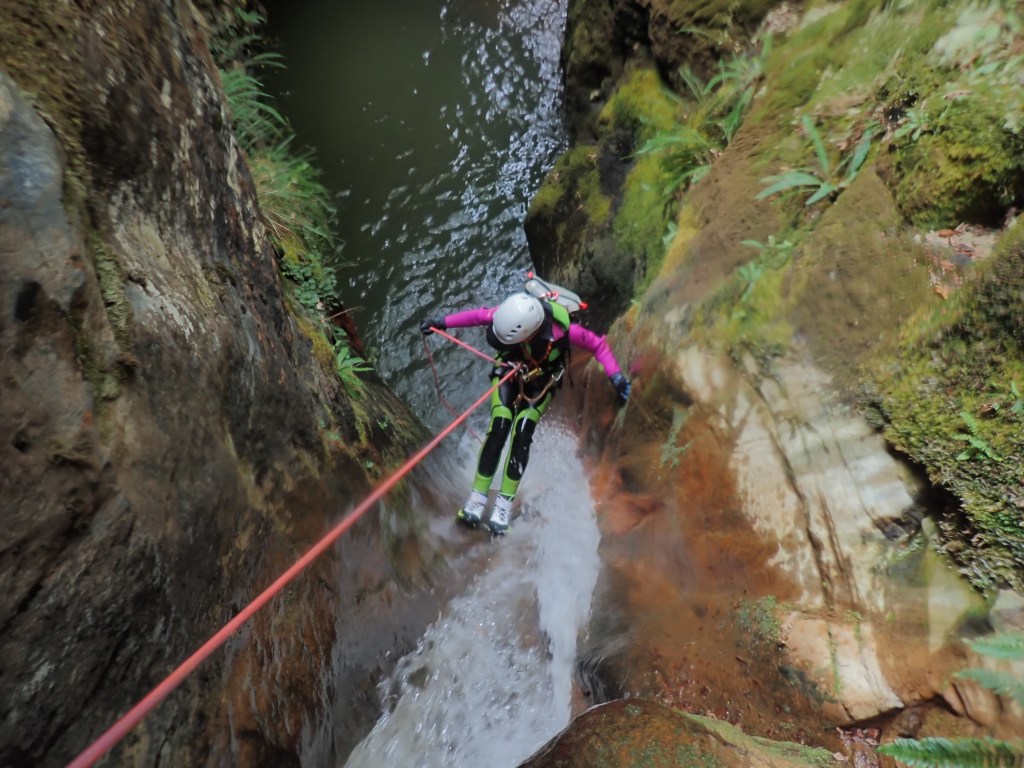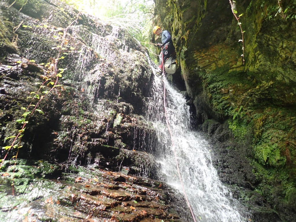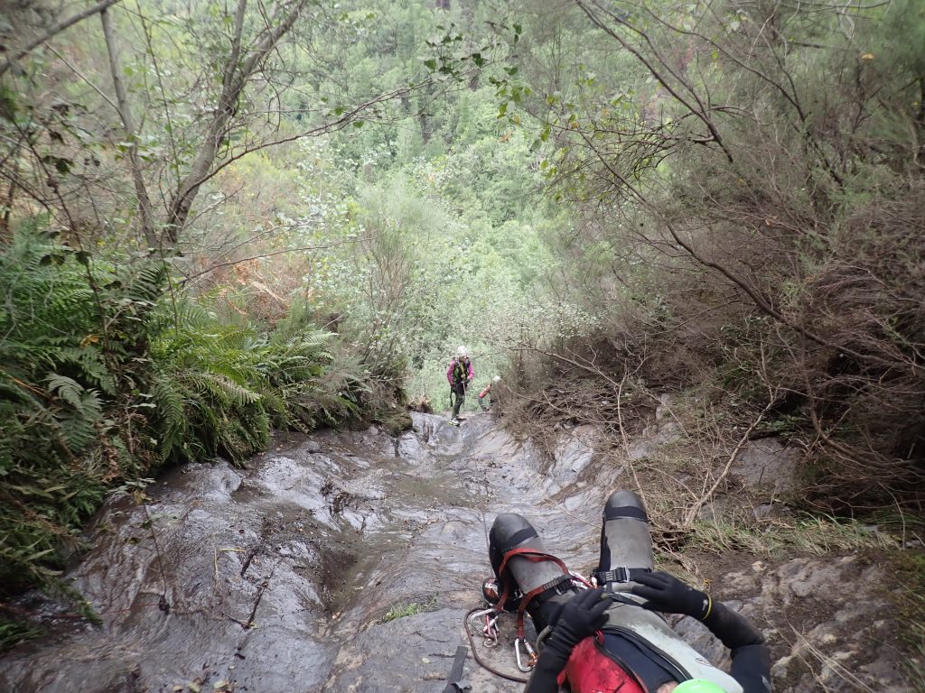 Este barranco fue una auténtica y grata sorpresa. Es cortito, con apenas 5 rápeles. Pero el frondoso bosque que recorre te sumerge durante un par de horas en una intensa verde dimensión, donde todas las cabeceras son naturales sobre sólidos árboles. Ni siquiera ves anclajes metálicos.