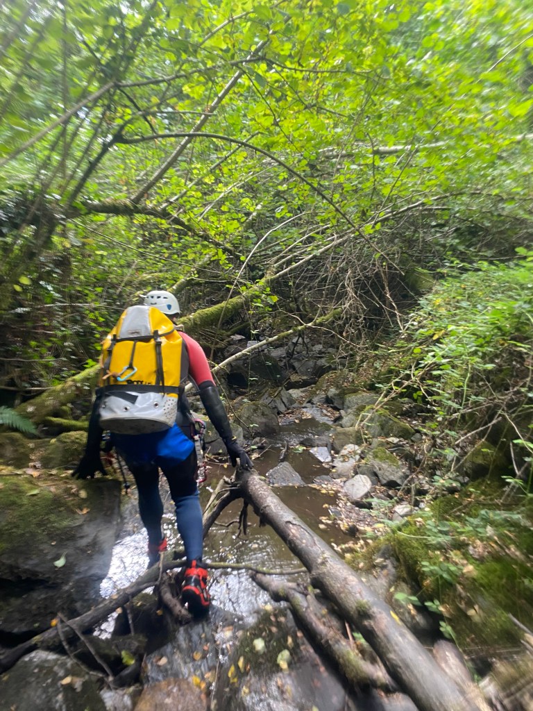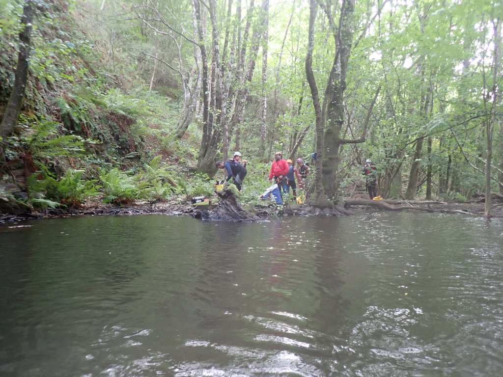 Lamentablemente, 3 de los barrancos más hermosos del Courel no pueden hacerse, al encontrarse situados en la zona devastada por el fuego. El sector Folgoso de Courel fue el más afectado, y en concreto los barrancos Carballido (superior y medo), Coiteladas y Fieitiras. Las instalaciones de las cabeceras han quedado seriamente afectadas por la intensidad de las llamas, con rocas fracturadas y anclajes comprometidos por las altas temperaturas. Además, la vegetación está calcinada y el agua es gris por el arrastre de ceniza. Es difícil saber cuándo el ecosistema se recuperará, pero seguramente tardará al menos entre 5 y 10 años, y posiblemente más hasta una recuperación completa. El contraste entre las verdes laderas repletas de robles y castaños que sobrevivieron frente a las laderas totalmente carbonizadas víctimas del incendio, es algo realmente sobrecogedor, que nos afectó mucho.